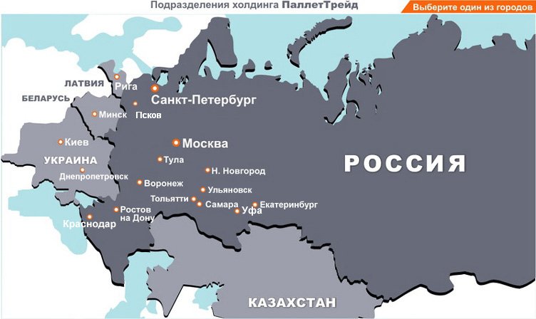 Для получения контактных данных интересующего Вас подразделения холдинга "ПаллетТрейд" выберите город на приведённой ниже карте: