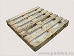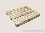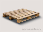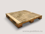 Настил поддона состоит 6-7 обрезных досок толщиной 20 – 25 мм., расстояние между которыми менее 100 мм. Снизу по периметру, для увеличения прочности могут присутствовать дополнительные доски. Ширина поперечной доски 130-145 мм.